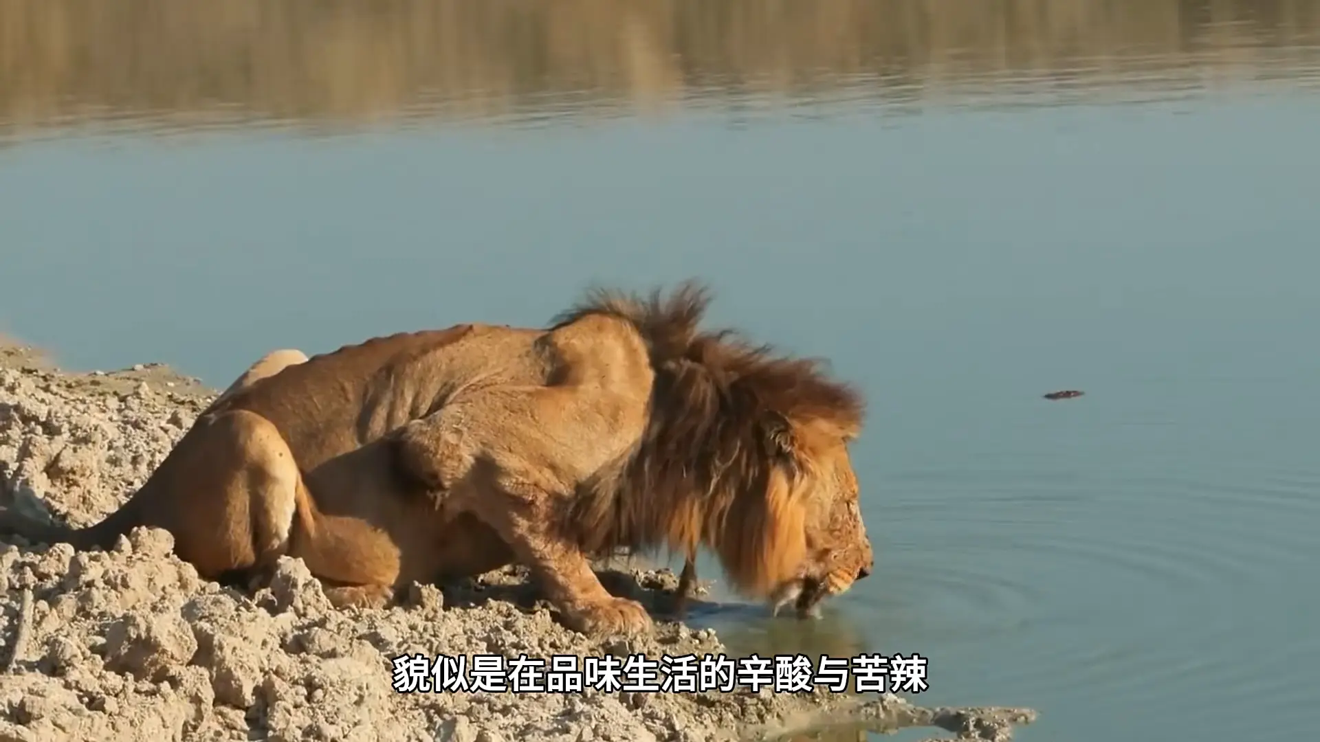 肃肃看世界杯体育,一只发型帅气的雄狮正趴在湖边发放的喝水。它伸出鲜红色的舌头轻轻舔舐着水面,貌似是在试吃生计的辛酸与苦辣。