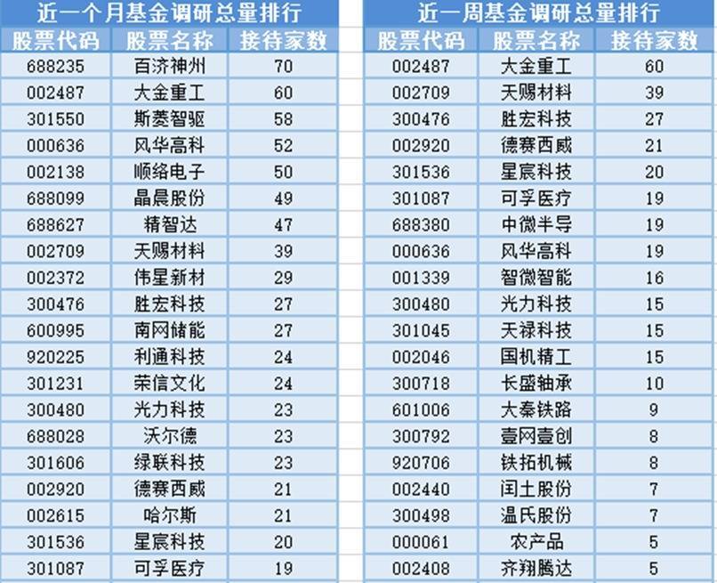 将时辰周期凭空到最近一周(3月5日-3月12日)来看,基金调研数目第一的公司是大金重工,大金重工属于风电行业,主营业务为海优势电装备研发与制造、远洋特种运载、船舶盘算与配置、新动力开拓与运营、风电母港运营。大金重工姜被60家基金机构调研,其次被调研数目较多的股票是天赐材料、胜宏科技和德赛西威,分辩继承39家、27家和21家基金机构的调研。