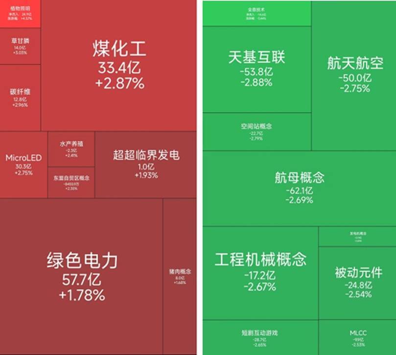 3月12日,A股三大指数甩手收盘,沪指跌0.1%,报4129.1点,深成指跌0.63%,报14374.87点,创业板指跌0.96%,报3317.52点。从板块行情上来看,当天泄露较好的是煤化工、MicroLED和绿色电力,而航母主意、天基互联和工程机械主意等板块下落。