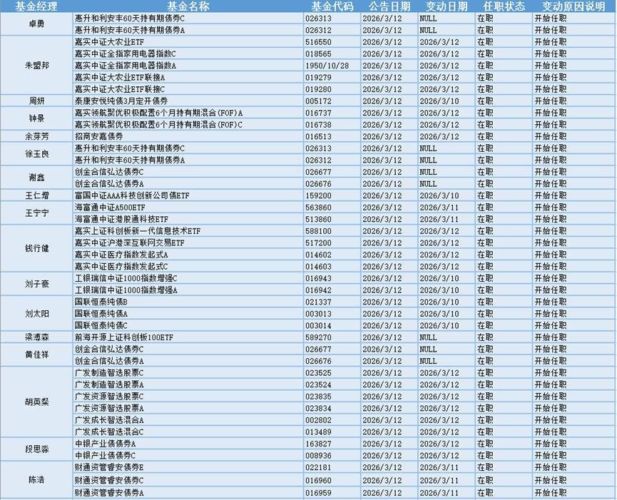 基金司理是一只基金家具最中枢的成员,能决定一只基金的投资场合、投资战略以及投资作风,基金司理出色的择时选股智力和调研权衡智力是基金功绩的有劲保证,是以基金司理是投资者在遴选基金家具时的繁重依据。基金司理的变动很猛进度上会影响到基金家具异日的泄露,是一个需要十分护理的信息。3.12日共有27位基金司剪发生任职变动。